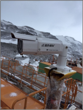 (圖注:安裝在極地施工現(xiàn)場(chǎng)的藍(lán)色星際BSR-IPH3324W紅外槍型網(wǎng)絡(luò)攝像機(jī))