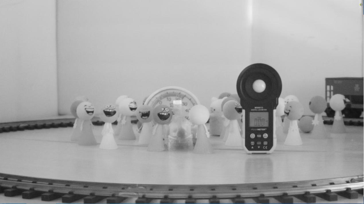 測(cè)試中,逐步降低監(jiān)控室內(nèi)照度至0.7Lux,監(jiān)控畫面仍為彩色,雖然整體色彩稍偏淡但仍具備很強(qiáng)的對(duì)比性,監(jiān)控畫面中小人偶面部表情以及鐘表數(shù)字和刻度都可清晰辨認(rèn)。接著降低照度,畫面自動(dòng)切換為黑白色,照度低至0.001Lux下時(shí),景物辨識(shí)度仍舊很高;將攝像機(jī)設(shè)置為強(qiáng)制彩色,此時(shí),畫面質(zhì)量稍有下降,但仍可看清整體監(jiān)控下的景物。由以上測(cè)試可以看出,該攝像機(jī)實(shí)現(xiàn)了星光級(jí)低照度,適用于夜間無可見光的監(jiān)控環(huán)境。