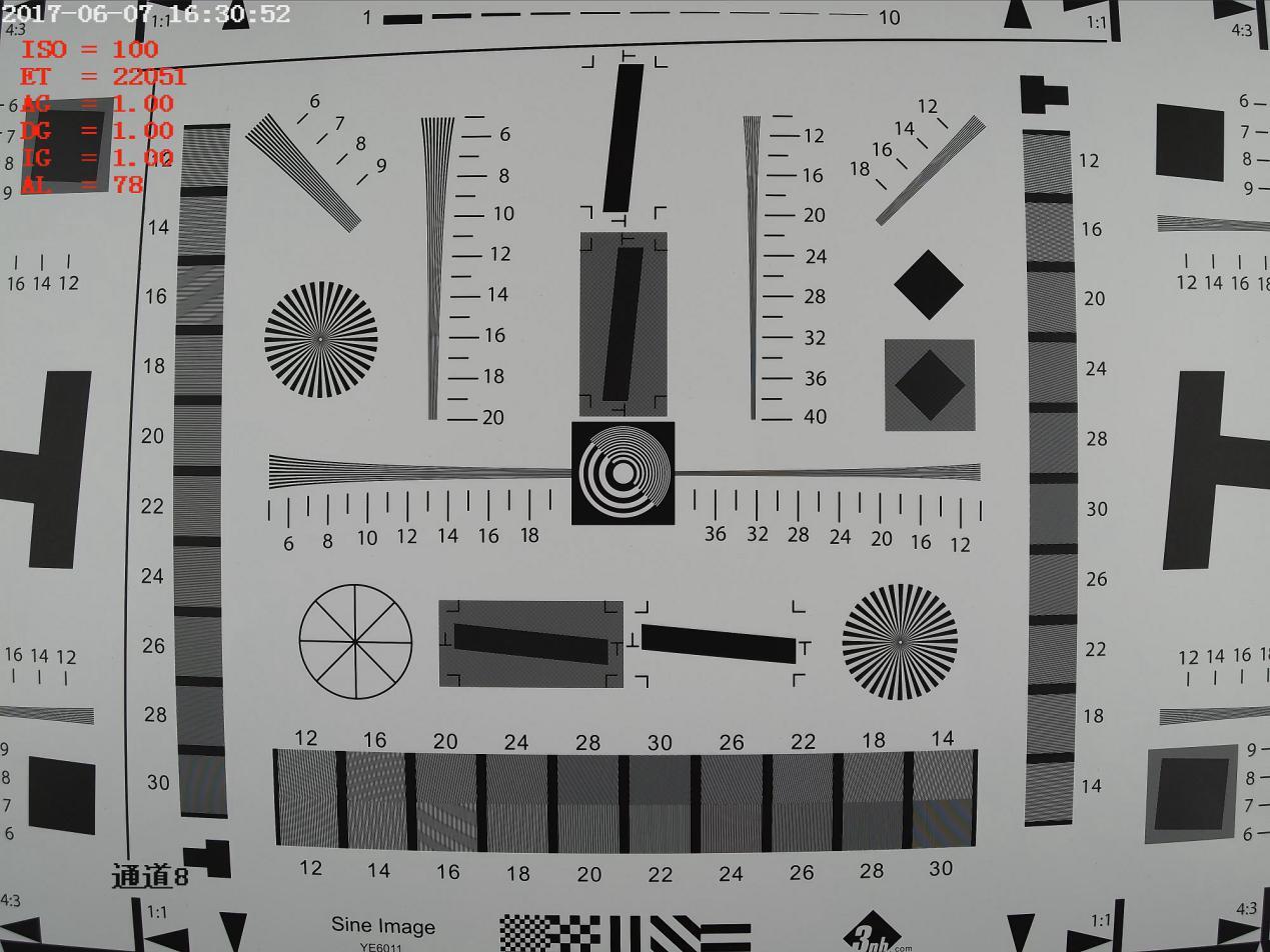 將攝像機參數(shù)設(shè)置為H.265、4K(4000×3000@30fps)、4Mbps。此時將該機對準4000TVL清晰度測試卡,觀察畫面發(fā)現(xiàn),該機的水平、垂直清晰度均達到了2850TVL。換上24色彩色還原測試卡,可發(fā)現(xiàn)該機色彩還原準確,邊緣層次分明。