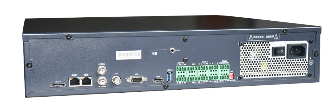該機(jī)后面板接口豐富,包含對(duì)講輸入/輸出接口、報(bào)警接口、自適應(yīng)以太網(wǎng)口等等,可滿足于各種應(yīng)用需求。整機(jī)功耗≤30W、工作溫度10℃~﹢55℃、工作濕度小于90%、重量≤7.0Kg,整體而言,該機(jī)方正輕盈,具有靈活的安裝方式,既支持桌面也支持柜機(jī)方式安裝。