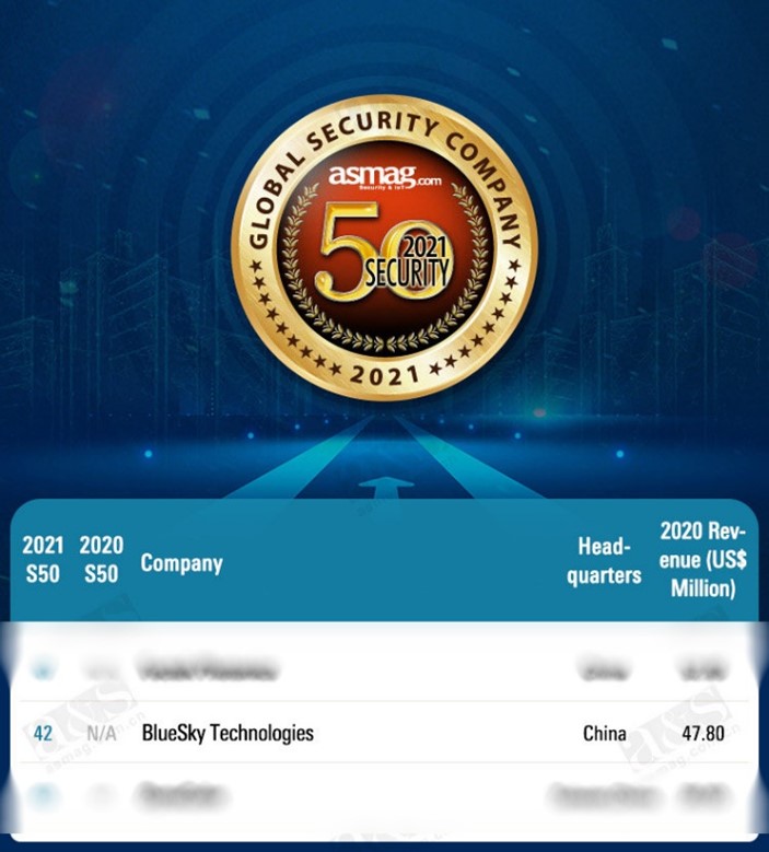 重磅!藍(lán)色星際進(jìn)入2021全球安防50強(qiáng)榜單