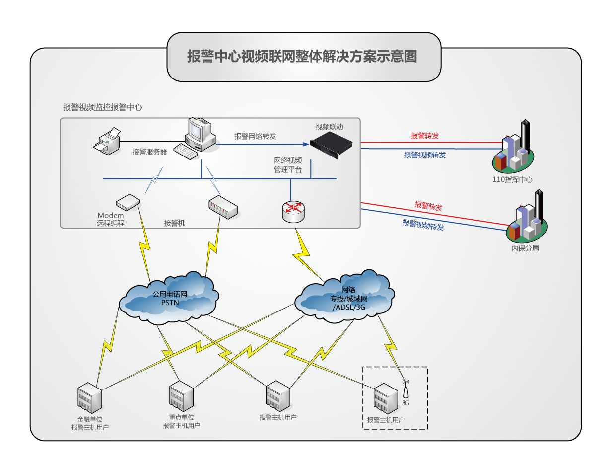 藍色星際網(wǎng)絡視頻管理平臺與報警服務公司現(xiàn)有報警平臺可進行有效整合,將使電話線路報警系統(tǒng)與網(wǎng)絡視頻系統(tǒng)融合。